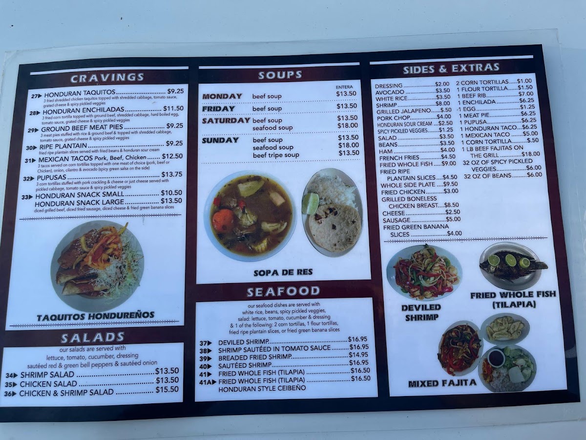 The menu offers a delightful variety of dishes, showcasing fresh ingredients and bold flavors. Customers like Daniel Born appreciate the delicious food and drinks, despite some early-service hiccups. Tiffany Callaghan hails it as her top takeout spot, while Queenvis Colon revels in the extensive flavors and generous portions of Honduran delights.